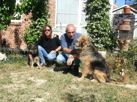 Os presentamos a la familia de Ixa (Padme). Su amigo de cuatro patas Pistón y junto a ellos están Mar y José.